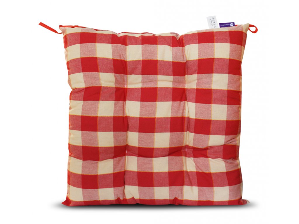 Prošívaný sedák na židli se zavazováním na šňůrky.